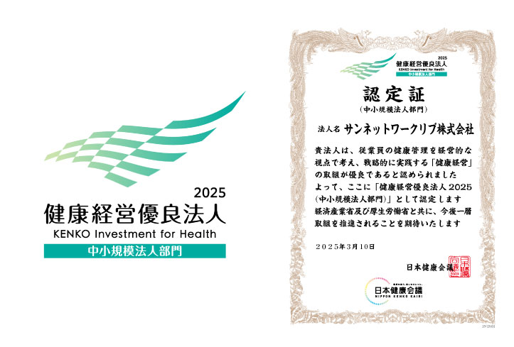 このたびサンネットワークリブ株式会社は、経済産業省 「健康経営優良法人 2025(中小規模法人部門)」の認定を取得しました。
